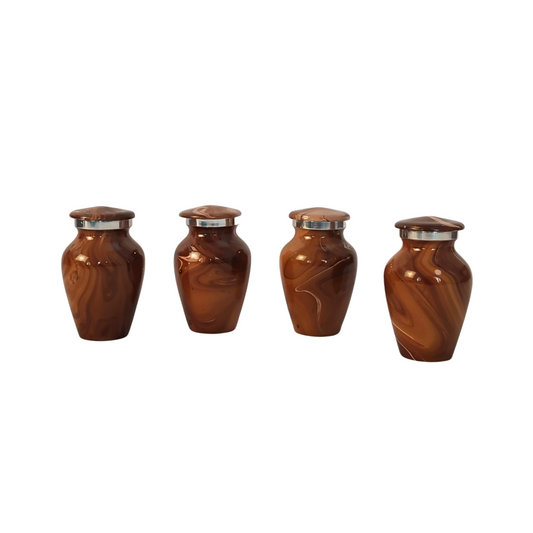 Marble Finish Aluminum Keepsakes Cremation Urn, 4 Mini Keepsakes - with velvet box