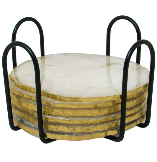 Round Gold Edged Epoxy Resin Coasters | Handmade - Set of 6 with Stand | Gift for housewarming | Stand included