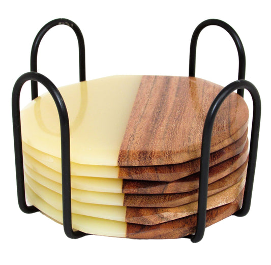 Resin Wood Combination Coasters | Set of 6 | Gift for housewarming | Stand included