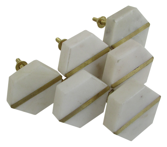 Solid Marble Brass Knobs, Door Drawer Pulls, Set of 6, Gift for housewarming