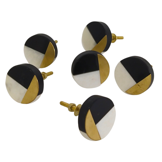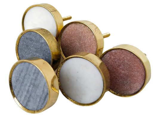 Solid Stone Brass Inlay Knobs, Door Drawer Pulls, Set of 6, Gift for housewarming