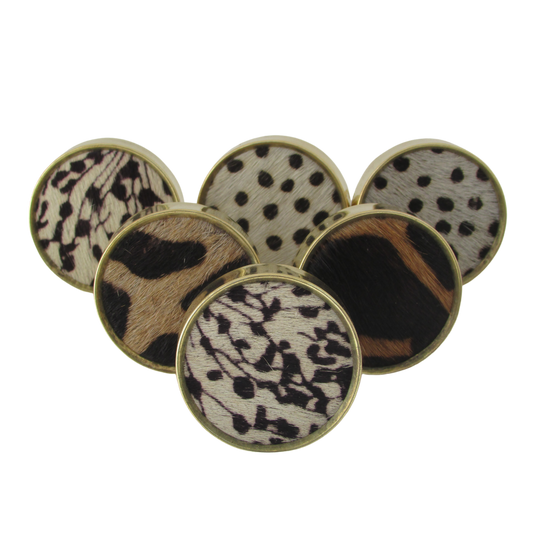 Luxury Themed Faux Leather and Brass Drawer Knob, Set of 6, Gift for housewarming